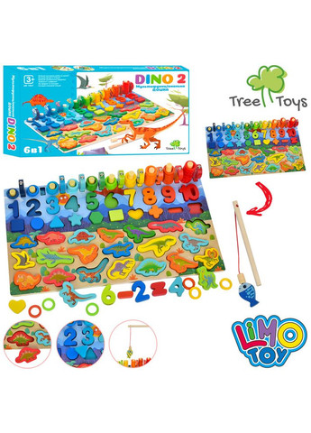 Деревянная игрушка Многофункциональная Досточка рамка-вкладыш. Дино-цифры, кольца. В коробке, 40,5-23-5 см.