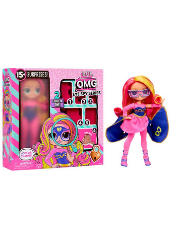 Встречайте шпионку из новой серии L.O.L. Surprise O.M.G. Eye Spy! Она не просто красавица – это героиня секретной миссии в мире LOL. SURPRISE! Ее задача - раскрыть скрытые тайны, а каждый этап распаковки становится частью увлекательной шпионской истории. Перед началом игры внимательно ознакомьтесь с инструкцией. В наборе 15 сюрпризов. Ключ и замок: откройте упаковку с помощью волшебного ключа - это первый шаг к раскрытию тайны. Секретные отсеки: в коробке спрятаны аксессуары, которые нужно найти и собрать. Наблюдайте за изменением цвета глаз и очков куклы, погрузив игрушку в холодную воду (для лучшего результата вода должна иметь температуру ниже 15 градусов Цельсия). Большая и яркая кукла, стильная одежда и аксессуары. Красивые длинные волосы - можно менять прически каждый день! Кукла имеет шарнирные руки и ноги, что позволяет придумывать еще больше интересных сценариев для игры. Высота куклы 23 см. Коробку можно использовать как для хранения игрушек, так и как отдельное модное пространство! В комплект входит: 1 кукла O.M.G., 1 комплект одежды, пара обуви, 1 пара сережек, 1 аксессуар, 1 игрушечный набор отмычек, 1 расческа, 2 бумажные вещи, Инструкция. Рекомендуется для детей от 3 лет. Характеристики: Развивающий - Эмоциональное развитие, Умение играть, Креативность; Звук – нет; Питание – не нужно; Батарейки входят в комплект – Нет; Возраст – 3-10; Бренд – L.O.L. Surprise!; Свет – нет; Звук – нет; Страна происхождения – КНР; Серия – O.M.G. Eye Spy; Размер игрушки без упаковки высота – 23,3; Размер игрушки в упаковке ширина – 7,62; Размер игрушки в упаковке высота – 25,4; Размер игрушки в упаковке длина – 25,4; В упаковке – 1; Ограничение по возрасту – до 36 месяцев; В комплект входит – 1 кукла O.M.G., 2 комплекта одежды, пара обуви, 1 пара сережек, 1 аксессуар, 1 игрушечный набор отмы; Гарантия – Гарантия не распространяется; Материал – комбинированные материалы; Срок годности, мес. - неограниченный;