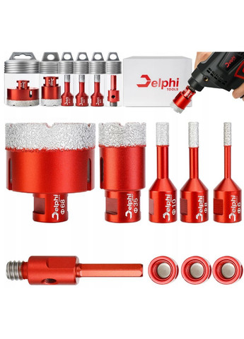 Delphi TOOLS НАБОР АЛМАЗНЫХ ФРЕЗ M14 5 шт. ⌀ 6,8,10,35,68 мм Адаптер для дрели Резьба M14 для шлифовальных машин - совместима с любой шлифовальной машиной M14 Коробки для хранения ДВОЙНОЙ ТЕХНИЧЕСКИЙ АЛМАЗ ВЫСОКОЕ КАЧЕСТВО МЕТАЛЛА ВЫСОКОКАЧЕСТВЕННЫЕ СВАРНЫЕ ШВЫ В комплект входят до 5 алмазных пил: 68 мм, 35 мм, 10 мм, 8 мм, 6 мм и адаптера для сверлильного станка Набор алмазных пил с использованием технологии вакуумной пайки Производительность: 60-100 отверстий (68 мм, 35 мм) 20-40 отверстий (10 мм, 8 мм, 6 мм) *зависит от твердости сверлимого материала и скорости вращения Otwornice ⌀ 6 мм, 8 мм, 10 мм имеют воск для отвода тепла от коронки Технические данные: Применение: Керамогранит, керамическая плитка, гранит, мрамор, нефрит. Возможно мокрое и сухое сверление Максимальная рабочая скорость: 13 000 об/мин Глубина обработки: до 3,5 см Высота алмазной части 15 мм - Алмазы установлены с помощью технологии вакуумной пайки Почему именно коронки для сверления отверстий Delphi Tools? Эти короноки подходят для сверления твердых материалов, таких как керамогранит, гранит, керамическая плитка и все каменные материалы толщиной до 3,5 см. Набор Delphi Tools ® изготовлен из высококачественного металлического корпуса, на который нанесен алмазный сегмент. Соответствующая твердость обеспечивает наибольший срок службы, а дополнительные боковые отверстия облегчают работу со сверлами, не засоряя их. Рекомендации для продления срока службы набора алмазных сверл Delphi Tools : Начинайте сверлить отверстие под углом 45°, плавно продвигаясь к углу 90° Рекомендуется выполнять круговые движения во время сверления - это обеспечит лучшее охлаждение Тщательно очищайте боковые вентиляционные отверстия после каждого использования и проверяйте их состояние перед каждой операцией сверления Используйте угловую шлифовальную машину/дрель/шуруповерт с регулируемой частотой вращения Максимальная рабочая скорость составляет 13 000 об/мин. Чтобы продлить срок службы набора сверл Delphi Tools ® и точность просверленных отверстий, не превышайте максимальную скорость. Сверла 6 мм, 8 мм, 10 мм - алмазные фрезы Delphi Tools ® ресурс: 20-40 отверстий В этих сверлах малого диаметра используется абразивная сила алмаза для сверления идеально ровных отверстий в твердых поверхностях. Это позволяет сконцентрировать всю мощность на небольшом участке, где должно быть просверлено отверстие, и исключает риск повреждения других частей поверхности. Это также предотвращает появление трещин и царапин. Предназначение: Небольшой набор сверл используется для крепления небольших предметов на кафельной стене. Если вы хотите повесить картину или полку, а у вас кафельная стена, просто просверлите в ней необходимое количество отверстий одним из сверл, установите в них крепеж и повесьте выбранный предмет. Пилы для отверстий 35 мм, 68 мм - алмазные фрезы Delphi Tools ® срок службы: 60-100 отверстий Применение: Алмазная пила большого диаметра отлично подходит для сверления отверстий в кафельной плитке, где необходимо установить опоры для полок и прищепки или крючки для подвешивания шкафов. Сверло большего диаметра также отлично подходит для сверления отверстий, чтобы закрепить шкаф или комод, чтобы он не упал. Оно обеспечивает быстрое и точное сверление отверстий без сколов и повреждений.