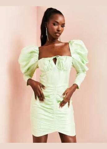 Платье-мини лаймовое ASOS (002320) ASOS LUXE puff sleeve corset dress in lime swirl jacquard ruched satin mini dress. Платье-корсет на подкладке с пышными рукавами и жаккардовым узором цвета лайм. Застежка на молнии на спине, рукава внизу на молниях. Материал – сатин. Состав: 100% полиэстер. Страна бренда -Великобритания, страна производства – Китай.