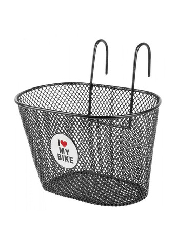 Корзина передняя I love my bike. Оборудована двумя универсальными крюками для быстрого монтажа на руль велосипеда. Размеры 250*150*145 мм.