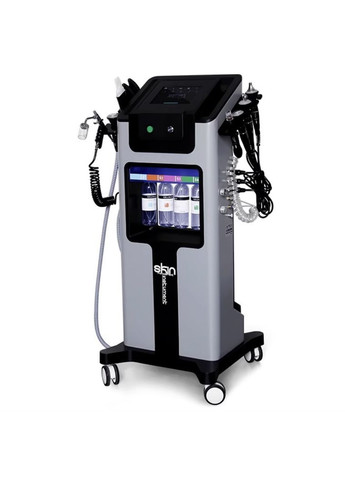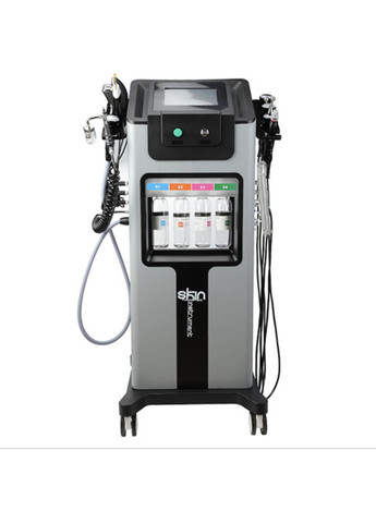 Косметологический комбайн гидропилинга 13 функций со сканером кожи лица Этот многофункциональный косметологический комбайн предназначен для профессиональной чистки лица и омолаживающих процедур. Он позволяет решить сразу несколько задач за один визит к косметологу. Косметологический аппарат объединил в себе много разных эффективных и популярных методик косметологии. В комплектацию входит 13 разных манипул, с помощью которых косметолог может выполнить поверхностные и глубокие процедуры по уходу за кожей. Манипулы выполняют следующие функции: RF лифтинг. Применяется в комплексных программах по уходу за возрастной кожей. После процедуры ускоряется выработка коллагена и эластина, разглаживается кожа, улучшается ее цвет. Гидродермабразия или аквапилинг. В набор с этой манипулой входит 8 насадок разных размеров и степень абразивности для обработки всех зон. Кожа в результате гидродермабразии получает все полезные вещества и микроэлементы, происходит ее омоложение и обновление. Фонофорез. Обеспечивает противовоспалительный и лимфодренажный эффект, ускоряет выработку гиалуроновой кислоты, коллагена, эластина. Процедура позволяет избавиться от рубцов, улучшить кровообращение и эластичность кожи, разгладить морщины. Микротоковая терапия. Она используется для нормализации обменных процессов кожи, повышения ее тургора, устранения возрастного птоза, лечения акне. Криотерапия или холодный массаж. Запускает процессы обновления и омоложения кожи. После процедуры кожа становится более эластичной, разглаживаются морщины, улучшается цвет лица. Ультразвуковой скраббер. Очищает кожу от ороговевшего слоя. Чистит поры. Проводит микромассаж поверхности кожи. Запускает омолаживающие процессы. Кислородную мезотерапию. Она заключается в введении в кожу омолаживающих мезококтейлей и сывороток, выбор которых зависит от проблем кожи. Аппарат разбивает структуру мезококтейля на наночастицы, что способствует их проникновению в глубокий слой дермы. Микротоковая терапия для коррекции овала лица (две манипулы – бабочки). Улучшает контуры лица. Подтягивает подбородок. Применяется на лице, шее и зоне декольте) Манипула для глаза. Для ультразвуковой мезотерапии глаз. Препараты для глаз вводятся в кожу вокруг глаз с помощью ультразвука. Карбокситерапия. Запускает омолаживающие процессы. Осветляет кожу, разглаживает морщинки. Стимулирует сосуды (укрепляет стенки сосудов и борется с куперозом) Дарсонваль – это специальный аппарат, оказывающий антибактериальное и регенерирующее действие на организм с помощью переменных электрических токов высокой частоты и напряжения. Благодаря его воздействию расширяются кровеносные сосуды, улучшается питание тканей и активизируется кровообращение. LED маска – это современный и безопасный способ ухода за кожей лица с интенсивным омоложением и регенерацией тканей с помощью фототерапии. Маска имеет 7 цветов, каждый из которых по-своему влияет на кожу лица и тела. Сканер состояния кожи – это оборудование, которое позволяет определить точное состояние кожи клиента: ее влажность, жирность, текстуру, пигментацию и другие параметры. Преимущества косметологических аппаратов Косметологический комбайн 13 в 1 – это самое лучшее оборудование для салонов красоты и любого косметологического кабинета с ма