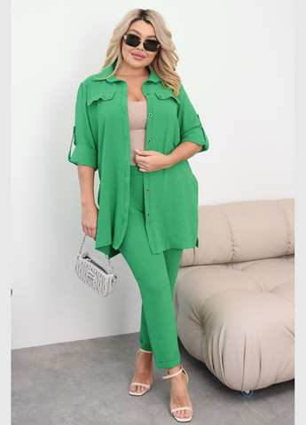 Костюм двойка: Рубашка на пуговицах с длинным рукавом, с хлястиком на рукаве (можно подвернуть и сделать его коротким) и брюки с боковыми карманами, пояс на резинке.