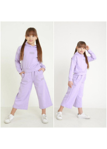 Костюм детский/подростковый для девочки Цвет - фиолетовый Брюки кюлоты турецкая двунить-диагональ На рост 146-152 длина кофты 47 см, Длина брюк 75 см