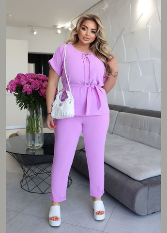 Цвет Лавандовый / Фасон Брючный / Стиль Повседневный / Узор Однотонный / Материал Креп