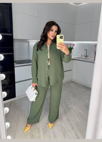 Женский костюм из ткани креп-жатка – это элегантный и стильный ансамбль, который подойдет как для офисного дня, так и для специальных событий. Рубашка в этом костюме классической формы, а футболка с сублимацией придаст оригинальность и свежесть образа. Брюки палаццо придают костюму легкости и игривости, создавая идеальный баланс между комфортом и элегантностью. В этом костюме каждая женщина будет смотреться стильно и безупречно!