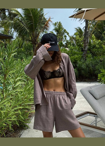 Цвет Темно-бежевый / Фасон С рубашкой, С шортами / Стиль Повседневный / Узор Однотонный / Материал Лен
