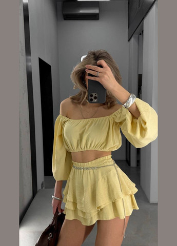 Идеальный летний комплект для настоящих романтиков 💕 Женский, воздушный и стильный образ, созданный из легкой ткани, дающей чувство свободы и комфорта. Открытые плечи придают соблазнительности, а двойная юбочка-шорты обеспечивает удобство и нежный акцент в каждом движении. ✨ Детали: • Эластичный топ с открытыми плечами • Двойная юбочка со шортами под низом • Идеально сидит по фигуре • Подходит для прогулок, свиданий или отдыха на море • Доступен в размерах 42-44 и 44-46 📏 Замеры: 42-44 • Обхват груди: 84–88 см • Длина рукава: 55 см • Длина топа: 23 см • Обхват талии: 62 см • Обхват бедер: до 100 см • Длина шорт: 42 см 44-46 • Обхват груди: 88–92 см • Длина рукава: 55 см • Длина топа: 24 см • Обхват талии: 68 см • Обхват бедер: до 106 см • Длина шорт: 43 см