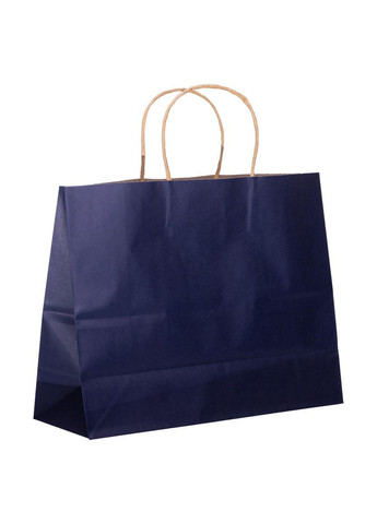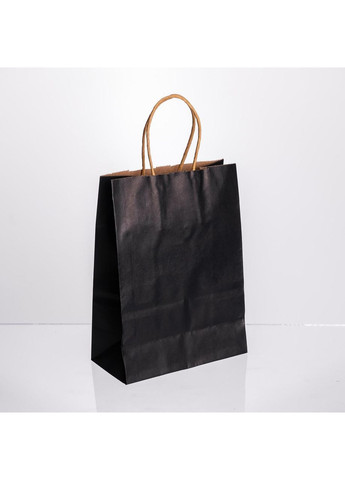 Черный крафтовый бумажный пакет с бурыми витыми бумажными ручками и плоским дном.
