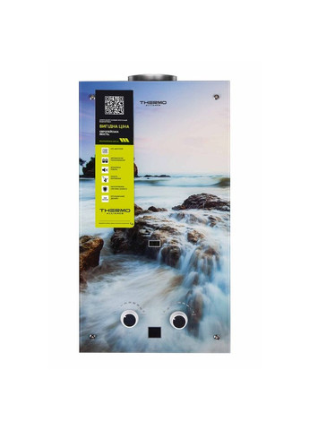 Газовая колонка Thermo Alliance дымоходная JSD20-10GA 10 л стекло (море) предназначена для нагрева воды для мытья посуды, купания в душе и других хозяйственно-бытовых нужд. На лицевой стороне изделия — красивый морской пейзаж, внизу — ручки управления параметрами работы прибора. Электрод розжига запускает горелку лишь после открытия крана в точке разбора горячей воды (срабатывает датчик протока). Для обеспечения запуска процесса необходимы 2 батарейки типа D (постоянное напряжение 3 В).