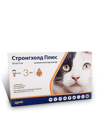 Чтобы оградить пушистика от вредных последствий и сохранить его здоровье, стоит позаботиться о нем заранее. Капли на холку от словенского бренда KRKA позволит легко защитить кота от паразитов и сохранить его здоровье. Достаточно нанести препарат на кожу кота в основе шеи и позволить ему впитаться. Преимущества: Быстрое действие, препарат начинает действовать через 2 часа; Можно купать животное уже через 30 мин без потери свойства средства; Препарат легок и прост в применении; Эффективно борется с клещами, гельминтами и блохами; Профилактическое средство для предотвращения заражения кота дирофиляриозом и другими заболеваниями. Состав и форма выпуска: Лекарственная форма: раствор для наружного применения. Селафорт в форме 6% и 12% раствора в качестве действующего вещества содержит селамектин соответственно 60 мг/мл и 120 мг/мл и вспомогательные вещества: изопропиловый спирт, бутилгидрокситолуол, диметилсульфоксид. По внешнему виду препарат представляет собой прозрачный раствор от бесцветного до желтого цвета или от бесцветного до коричневого или от бесцветного до коричнево-желтого или от бесцветного до желто-зеленого цвета. Селафорт выпускают расфасованным в полимерные пипетки разного объема с колпачками разного цвета: Селафорт 6% раствор по: 0,25 мл (розовый колпачок), 0,75 мл (бирюзовый колпачок), 1 мл (серо-коричневый колпачок); Селафорт 12% раствор по: 0,25 мл (фиолетовый колпачок), 0,5 мл (оранжевый колпачок), 1 мл (красный колпачок), 2 мл (зеленый колпачок), 3,0 мл (темно-синий колпачок). Пипетки упаковывают по 1 штуку в блистер, которые помещают вместе с инструкцией по применению в картонные коробки. Цвет коробки и колпачков пипеток в этой коробке одинаковы. Отпускается без рецепта врача ветеринарной медицины. Фармакологические свойства Селафорт относится к противопаразитарным лекарственным препаратам группы макроциклических лактонов. Действующее вещество препарата - селамектин обладает широким спектром системного нематодоцидного, инсектицидного и акарицидного действия, активно против нематод, насекомых и саркоптоидных клещей, паразитирующих у собак и кошек, обладая ларвицидными и овоцидными свойствами, прерывает цикл развития насекомых. Селафорт по степени воздействия на организм относится к умеренно опасным веществам (3 класс опасности по ГОСТ 12.1.007-76), в рекомендованных дозах не оказывает местнораздражающего, резорбтивно-токсического и сенсибилизирующего действия, хорошо переносится кошками и собаками разных пород, включая колли и родственные породы собак. Препарат токсичен для пчел, а также рыб и других гидробионтов. Порядок применения Селафорт назначают собакам и кошкам с лечебной и профилактической целью при энтомозах, вызванных блохами, вшами и волосоидами, отодэктозе, саркоптозе, анкилостомозе и токсокарозе, а также для профилактики дирофиляриоза. Селафорт применяют собакам и кошкам путем одноразового нанесения на сухую невредимую кожу, используя пипетки разной фасовки. Перед применением препарата пипетку вынимают из блистера и, держа вертикально, нажимают на колпачок, чтобы проткнуть носик пипетки, затем снимают колпачок и, раздвинув шерсть между лопатками у основания шеи, выдавливают содержимое пипетки, непосредственно на кожу животного. Дозу препарата (объем пипетки) выбирают, учитывая вид и массу животного: 