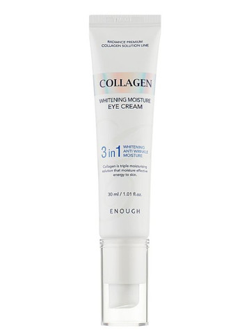 Уберите консилер в сторону! Хватит маскировать следы усталости вокруг глаз — пора устранить их, воздействуя на причину, чтобы чувствовать себя уверенно и красиво даже без макияжа. В этом вам поможет Collagen 3 in 1 Whitening Moisture Eye Cream от бренда Enough. Это крем в стике с удобным аппликатором. Используйте его в комплексе с повседневным уходом, чтобы сохранить упругость кожи и предотвратить появление как мимических, так и возрастных морщин. Рекомендуется к применению после 25 лет. Особенности Collagen 3 in 1 Whitening Moisture Eye Cream от Enough: Разработан для кожи вокруг глаз; Устраняет тёмные круги и другие признаки усталости; Снимает отёчность и придаёт ощущение свежести; Ниацинамид осветляет кожу и выравнивает тон; Экстракт V-пептида регулирует работу клеток и контролирует выработку меланина; Морской коллаген повышает упругость и насыщает кожу минералами; Предотвращает сухость и шелушение; Подготавливает кожу век к нанесению макияжа и повышает его стойкость. На этот товар нет обмена, возврата и гарантии.