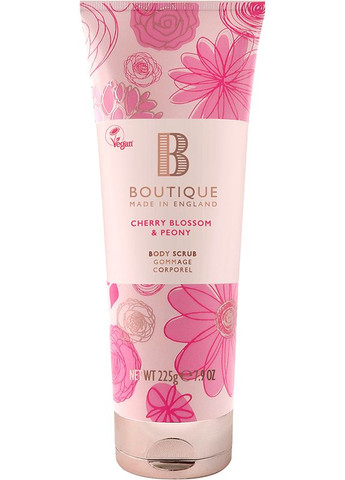 Скраб для тела Cherry Blossom & Peony Boutique – средство отшелушивания отмерших клеток, помогает улучшить текстуру кожи. Скраб открывает поры, повышает эффективность поглощения увлажняющих и питательных средств. Предотвращает появление вросших волос (если использовать перед бритьем/эпиляцией). Стимулирует кровообращение, придает коже здоровый вид. Удаляет загрязнение и старые, отмершие клетки, способствует выравниванию тона кожи. Средство обладает приятным нежным ароматом вишни и пионов, который создаст максимально уютную атмосферу во время скрабования. Снимает стресс, поможет хорошо расслабиться. Преимущества скраба для тела Cherry Blossom & Peony Boutique: Эффективно удаляет отмерший эпидермис. Способствует обновлению клеток. Удаляет загрязнение. Выравнивает тон. Открывает поры. Можно использовать ладонь или специальный аппликатор. Массажными круговыми движениями средство распределяется по поверхности. Смывается водой. После скрабования кожа увлажняется кремами\лосьонами. Состав: Aqua (Water), Cetearyl Alcohol, Cetyl Alcohol, Ceteareth-20, Oryza Sativa (Rice) Germ Powder, Prunus Amygdalus Dulcis (Sweet Almond) Shell Powder, Glycerin, Sodium Benzoate, Parfum (Fragrance), Potassium Acrylate.