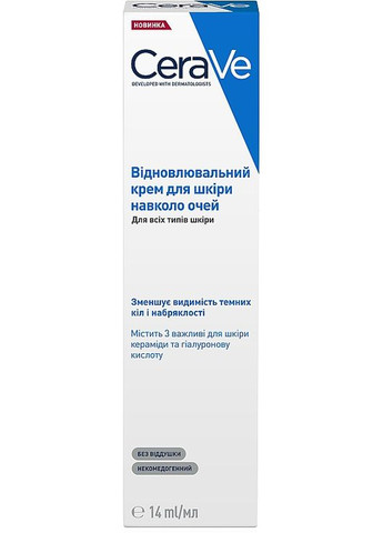 Когда речь заходит о коже вокруг глаз, ассоциация с темными кругами и отеком возникает первой. К счастью, правильно подобранное средство может лишить вас уставшего взгляда и подарить комфорт на продолжительное время. Бренд CeraVe представил крем, предназначенный для сухой кожи вокруг глаз. Его формула обогащена керамидами, гиалуроновой кислотой и ниацинамидом, которые поддерживают оптимальный уровень гидратации и укрепляют барьерные свойства кожного покрова. Формула одобрена ассоциацией офтальмологов, поэтому каждое использование будет безопасным и эффективным. Особенности восстановительного крема для кожи вокруг глаз от бренда CeraVe: - содержит морской и растительный комплексы, которые помогают осветить область вокруг глаз; - имеет комфортную нежирную текстуру; - быстро впитывается, не оставляет липкий финиш; - крем не содержит ароматизаторов и красителей; - уменьшает появление темных кругов; MVE (запатентованная система постепенного высвобождения увлажняющих ингредиентов для смягчения в течение всего дня); - керамиды помогают восстановить и поддерживать естественный защитный барьер; - гиалуроновая кислота поддерживает оптимальный уровень увлажнения; - ниацинамид успокаивает покраснение; экземы.