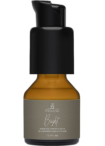 Нежная кожа вокруг глаз ежедневно подвергается деструктивному воздействию окружающей среды. Чтобы подольше сохранить ее красоту и молодость, следует подобрать правильный уход. Уменьшить проявления усталости, снять тусклость и повысить упругость эпидермиса по мощности мощного крема Bright бренда Ptichkin Sad. Его активная формула с растительными компонентами заметно превращает кожный покров, возвращая ему здоровое сияние. Особенности крема от темных кругов и отеков под глазами Bright от Ptichkin Sad: - консистенция легкого флюида; - создан на основе мощных антиоксидантов, таких как ресвератрол, витамины С, Е, коэнзим, ниацинамид; - предупреждает появление мимических морщин и линий; под глазами; - придает свежий и отдохнувший вид; - освещает пигментацию и улучшает эластичность кожи; - борется со свободными радикалами, предупреждая фотостарение; - кофеин повышает микроциркуляцию крови, улучшая тон лица; восстановленной, защищает от чрезмерной потери влаги.