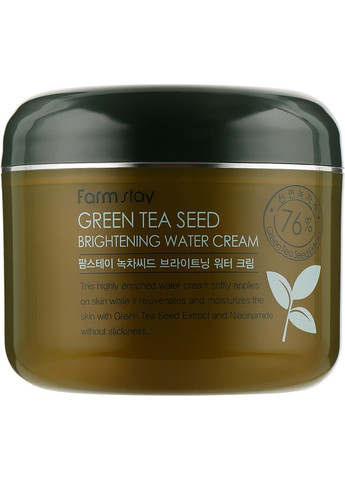 FarmStay Green Tea Seed Whitening Water Cream – натуральный крем по уходу за кожей лица с целью освещения пигментных пятен, общего оздоровления, повышения упругости и эластичности. Формула бьюти-продукта разработана специалистами южнокорейского бренда FarmStay и содержит экстракт зеленого чая, гиалуроновую кислоту и ниацинамид. Крем обеспечивает интенсивное питательное и увлажняющее действие, разглаживает кожный покров и дарит лифтинговый эффект, защищает от агрессивного воздействия внешних факторов. Особенности крема Tea Seed Whitening Water от FarmStay: - натуральный бьюти-продукт; - основной активный ингредиент формулы - экстракт зеленого чая; - нормализует обмен веществ; - устраняет раздражение, покраснение, чувство дискомфорта; - антиоксидантное и противовоспалительное действие; - нормализует; эластичность и упругость; - обладает влагоудерживающими свойствами; - осветляет кожу; - осветляет пигментацию; - стимулирует кровообращение; - минимизирует расширенные поры; - комплексно оздоравливает кожу лица;