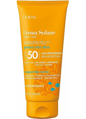 Сделайте свою кожу здоровой и загорелой вместе с солнцезащитным кремом SPF 50 бренда Pupa. Сбалансированные и фотостабильные фильтры обеспечивают полную защиту от УФ-лучей и инфракрасного излучения, предотвращая появление ожогов, покраснение и шелушение. Витамин Е в составе защитит от свободных радикалов, окислительного стресса и фотостарения, повышая упругость. Эксклюзивный актив Melastim Tech ускорит получение интенсивного загара путем стимуляции естественного процесса выработки меланина. Особенности Pupa Sunscreen Cream: - имеет приятную и легкую консистенцию, которая быстро впитывается без следа; - содержит сбалансированные и фотостабильные фильтры; - гарантирует защиту от UVA и UVB лучей, инфракрасного излучения; - предотвращает появление солнечных ожогов и шелушения; предотвращает появление признаков фотостарения; - повышает эластичность кожи; - Melastim Tech стимулирует естественный процесс выработки меланина; - дает возможность быстрее получить устойчивый и равномерный загар; и октиноксата; - отличается водостойкой гипоаллергенной формулой; - протестирован дерматологами; - подлежит вторичной переработке; - экономно расходуется.