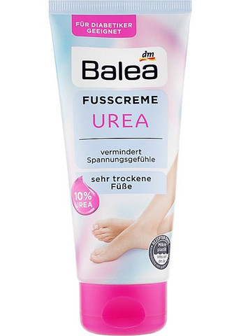 Balea Urea 10 % крем для ног 100 мл | интенсивное увлажнение для очень сухой кожи, подходит диабетикам Крем Balea Foot Cream с 10 % мочевины мгновенно смягчает потрескавшиеся пятки, устраняет стянутость и насыщает кожу влагой на 24 часа. Формула HydroPlus-комплекса сочетает мочевину, пантенол, глицерин и витамин B3, чтобы восстанавливать естественный барьер и предотвращать повторное пересыхание. 10 % Urea – быстро размягчает огрубения и удерживает влагу. Пантенол + глицерин – успокаивают и ускоряют регенерацию микротрещин. Витамин B3 – укрепляет барьер, снижает раздражение и покраснение. Лёгкая текстура быстро впитывается, не оставляет жирной плёнки. Формула без микропластика; подходит людям с диабетом. GTIN 4066447438437, произведено в Германии. Применение: наносите на чистые, сухие стопы утром и/или вечером, особенно на пятки и подушечки. Для глубокого ухода используйте ежедневно.