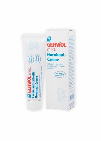 Крем для загрубевшей кожи Gehwol Hornhaut Creme – это эффективное средство для интенсивного ухода за ороговевшей, загрубевшей и потрескавшейся кожей стоп. Благодаря мочевине, молочной кислоте, глицерину и аллантоину крем размягчает грубую кожу, уменьшает избыточное ороговение и способствует ее обновлению. Подходит для ежедневного использования, особенно при чрезмерном образовании мозолей или сухости стоп. Назначение: Для смягчения, увлажнения и уменьшения загрубевшей, ороговевшей кожи стоп. Состав: Вода, мочевина, глицерин, стеариновая кислота, цетеариловый спирт, лактат натрия, декаолейат, цетилпальмитат, молочная кислота, аллантоин, цетеарилсульфат натрия, октилдодеканол, диметикон, феноксиэтанол, этил. Наносить крем 1–2 раза в день на очищенную и сухую кожу стоп, особенно на загрубевшие участки. Легкими массирующими движениями втереть до полного впитывания. Рекомендуется регулярное применение для достижения наилучших результатов. Предостережение: Только для наружного применения. Избегать попадания в глаза и слизистые. В случае раздражения прекратить использование. Хранить в недоступном для детей месте. Не наносить на открытые раны или кровоточащие трещины.