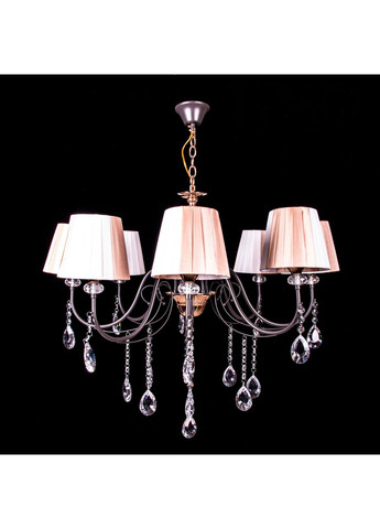 Люстра выполнена в классическом стиле. На каркасе цвета кофе+золота размещены подвески из хрусталя, который не мутнеет со временем и сохраняет перелив, за который так любят хрусталь. Она отлично впишется в Ваш интерьер и придаст ему роскоши и блеска. Данная люстра подойдет как для высоких, так и для средней высоты потолков. Абажуры выполнены из прочного и качественного текстиля. Люстра имеет крепление "под крючок" и надежно фиксируется на потолке. Благодаря регулировке высоты потолочной чаши люстра можно установить под натяжной потолок. Приобрести лампочки к люстрам вы также можете у нас на сайте. Классическая люстра с абажурами и хрустальными элементами. Цвет основания: кофе+золото. Цвет абажуров: белый + кофейный. 5 патронов Е27. Люстра выполнена в стиле "арт-деко", она будет смотреться на высоких и средней высоты потолков. Высота: 85мм. Диаметр: 76 мм.
