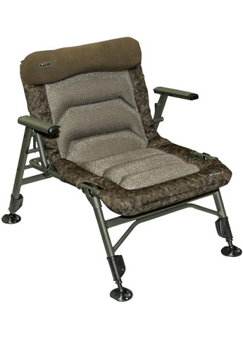 UnderCover Camo Range – семейство карповых аксессуаров от известного британского бренда Solar Tackle. Все продукты линейки объединяет дизайнерский стиль с использованием фирменного камуфляжного принта на текстильных материалах. Кресло Solar Tackle Undercover Camo Recliner Chair предоставляет потрясающие возможности регулировки наклона спинки в 7-ми положениях. Конструкция предусматривает выбор положения при помощи удобных подлокотников. Матрас имеет полиуретановую набивку для обеспечения комфорта пользователя в течении длительного времени. Прочный складной каркас позволяет компактно транспортировать и хранить кресло. Возможность регулировки длины ножек и наличие на них подвижных упоров способствует безупречной устойчивости кресла на любых поверхностях. Кресло Solar Tackle Undercover Camo Recliner Chair – превосходный выбор для рыбалки, пикников и кемпинга. - мягкий матрас с подкладкой из полиуретана 600D и камуфляжной тканью; - семи-точечная система откидывания спинки; - регулировка положения спинки с помощью подлокотников; - эргономичные подлокотники; - регулируемые ножки Solar mud; - складная конструкция.