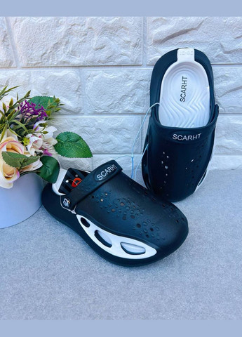 Стильные кроксы Scarrhet без джибитсов, цвет черные с белым, легкие, для мальчиков и девочек.