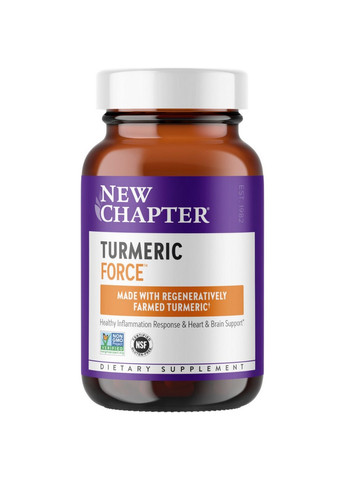 New Chapter Turmeric Force содержит куркуминоиды, которые имеют мощное противовоспалительное и антибактериальное действие.Куркума – это растение семейства имбирных, которое давно известно своим богатым биохимическим составом и лекарственными свойствами.Особенности:Сделано из регенеративно выращенной куркумыУкрепляет сердечно-сосудистую системуПоддерживает роботу мозгаКуркумин известен как тонизирующее, болеутоляющее и кровоостанавливающее средство. При постоянном его применении повышается концентрация кателицидина, белка, обладающего противомикробными свойствами. Именно он помогает справиться с грибками и вирусами, повышая сопротивляемость иммунной системы.Как принимать:Принимать по 1 капсуле в день во время еды.Содержание элементов в 1й порции1 вегакапсула, Экстракт куркума (Curcuma longa) (корневище) 320 мг, Органическая куркума (Curcuma longa) (корневище) 80 мг, Ингредиенты, Оливковое масло первого холодного отжима, гипромеллоза (капсула), органический желтый пчелиный воск