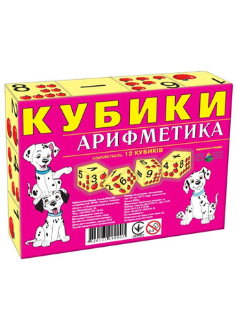 Кубики — интересный материал для строительства, а также для игры «Кто последний, тот и проиграл». В этой игре каждый участник ставит один кубик сверху за предыдущий, выстраивая башню — у кого башня разваливается, тот и проиграл. Это очень веселая и шумная семейная игра для любого возраста, и чем больше кубиков — тем лучше. В процессе игры малыш заметит, что на сторонах кубиков, на однотонном фоне изображены математические знаки и цифры, а рядом с каждой цифрой изображено такое же количество яблок. Используя такие кубики в игровом процессе, сначала Вы знакомите ребенка с новыми знаниями: цифрами и математическими знаками, а он соответственно их запоминает. На втором этапе Вы уже спрашиваете: «А где цифра «5», «Найди три яблока», таким образом Вы тренируете и развиваете память ребенка. Затем изучаете с ребенком простые арифметические действия (сложение, вычитание, сравнение). Играя, малыш разовьет пространственное представление, логическое мышление, память, мелкую моторику рук, научится находить нужные изображения среди других, расширит кругозор. Комплектность: 12 кубиков Характеристики: Состояние: новое Возрастная группа: От 3 лет Материал: Комбинированный Тип: Кубики Цвет: Разные цвета Упаковка: Картонная коробка Вид: Кубики Возраст: От 3-х лет Гарантия: 14 дней Пол: Унисекс Страна регистрации бренда: Украина Страна-производитель товара: Украина