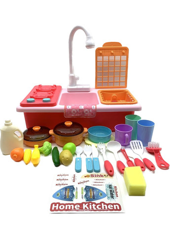 Кухня детская интерактивная Home Kitchen с посудой и продуктами WD-T41 (льется вода) 29 предметов – компактная игровая кухонная зона, где всегда порядок со вкусом! Компактная кухонная зона разбудит у маленьких поваров невероятный интерес к обычным кулинарным процессам. На собственном кухонном поле дети будут изучать важность мытья продуктов перед употреблением и научатся содержать все в чистоте и порядке. Что включено: Миниатюрный сосуд и кухонные приборы: Тарелки, кастрюли, сковородки, ложки, вилки и даже игрушечная еда, которую можно мыть, готовить и подавать. Развивающая игра: Игра с игрушечной кухней расширяет воображение детей, развивает их социальные навыки, тренирует координацию движений и стимулирует умственное развитие через воспроизведение новых игровых сценариев. Особенности: Автоматическая подача воды из крана: Невероятно реалистичный опыт, еще больше привлекающий внимание. Легкость в использовании: Компактная и удобная конструкция легко складывается и разворачивается. Варочная поверхность (муляж): Дополнительный элемент, придающий игре дополнительный уровень реалистичности. Комплект для мытья посуды: Губка, тряпка и щетка для мытья посуды включены в комплект. Хранение кухонных принадлежностей: Удобные крючки позволяют хранить кухонные приборы в порядке.