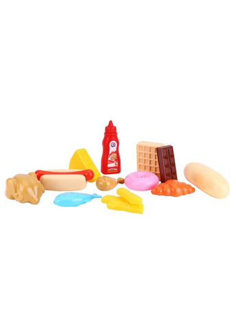 Интересные и правильные игрушки помогают детям изучать мир, развивать таланты и узнавать что-нибудь новое. Важно, чтобы игрушки были понятны и созданы на основе знакомых ребенку вещей. Разнообразная посуда, кухонные принадлежности и игрушечная еда известны детям, ведь они встречают их каждый день. Именно поэтому разнообразные игрушечные фрукты, овощи, бургеры, пончики и конфеты интересны всем малышам. Игрушечный набор "Продукты ТехноК" обязательно понравится всем детям. Он идеально подойдет для увлекательной сюжетно-ролевых игр в кафе, ресторан фаст-фуд или супермаркет. Игрушечная еда дополнит игрушечные кухни и наборы посуды, сделает игры реалистичными и увлекательными. Теперь можно открыть кафе для друзей и игрушек, организовать доставку еды или приготовить вкусный ужин. Батон, сыр твердый, куриные голени, хот-доги, картофель фри и кетчуп как в этих наборах фаст-фуда. А для уютного чаепития с вкусными десертами есть пончик, круассан, шоколадка и вафли. Об ужине тоже не забыли – выбирайте жареная рыба или нежная курятина. Все продукты в наборе реалистичны и приятны. Удобный размер игрушек специально предназначен для детских рук. Он также хорошо подходит к игрушечной посуде, тележкам для супермаркета и корзинам ТехноК. Игрушки из набора также подходят для игр по сортировке, изучению цветов и форм. Различные сюжетно-ролевые игры развивают у детей воображение и фантазию, мышление, мелкую моторику, коммуникативные и социальные навыки. Также родители, играя с детьми, обучают их новым словам: названия предметов, разнообразных продуктов, цветов и форм. Игрушки безопасны для малышей, изготовлены из крепкого и качественного пластика без запаха и без острых краев. В наборе: булка хот-дога – 1 шт., сосиска – 1 шт., бутылка "Кетчуп" – 1 шт., голень – 1 шт., картофель фри – 3 шт., тушка куриная – 1 шт., рыба – 1 шт. шт. шт., творог – 1 шт., батон – 1 шт., круассан – 1 шт., пончик – 1 шт. шоколад – 1 шт., вафли – 1 шт. Упаковка – сетка с картонной наклейкой. Для детей от 3х лет.