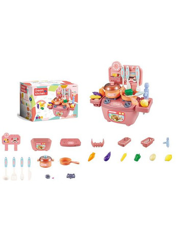 Новая интерактивная «Кухня ТехноК» поражает своей реалистичностью. В этой игрушке малыша очарует разнообразие эффектов: яркая красная подсветка конфорки, звуковые эффекты ( "шипение" и "бульканье"), а главное - невероятный эффект пары. Из кастрюли, в которой что-то "варится", поднимается белый пар. Но родители могут не волноваться - пар только удачная имитация, он на самом деле холодный и безопасный для ребенка. Лучше всего это наблюдать в темной кастрюльке с прозрачной крышкой. В наборе вместе с игрушечной кухней вся необходимая посуда для приготовления вкусных блюд. Есть кастрюлька с прозрачной крышкой (с отверстиями для прохождения пара), сковородка, доска для нарезки и яркие овощи. Две картонные коробочки с «спагетти» и «хлопьями» для приготовления полезных завтраков, а для чаепития - две чашки с блюдечками и сахарница. А после вкусного обеда - надо помыть посуду. Для этого есть мойка с краном и мочалка в форме цветочка. Такие сюжетно-ролевые игры хорошо развивают фантазию и мышление детей, помогают сформировать навыки приготовления пищи и уборки, изучить правила поведения с техникой на кухне. Высота кухни в собранном виде 81 см, а ширина столешницы 51 см. По параметрам высота-ширина и глубина новинка является одним из лидеров рынка. У широкой столешницы удобно играть двум, а то и трем детям. Оригинальные ножки кухни с двумя шкафчиками делают ее устойчивой к опрокидыванию и очень функциональной. Игрушка изготовлена из высококачественного прочного пластика без запаха. Комплектация: игрушечная кухня, варочная панель с электронным модулем, кран, досточка, кастрюля с крышкой, сковородка, чашка - 2шт., блюдце - 2шт., ложка - 2шт., вилка -2шт., нож - 2шт., тарелка - 2шт. , сахарница с крышкой, вилка большая, шумовка, лопатка, черпак, огурец, морковь, баклажан, помидор, коробочка - 2шт., губка. Элементы питания - 3 батарейки типа АА (не входят в комплект). Игрушка для детей от 3-х лет. Пожалуйста, соблюдайте все правила эксплуатации игрушечной кухни, указанных в подробной инструкции. ВНИМАНИЕ! Перед первым использванием игрушки для эффекта пара рекомендуем залить воду в боковые отверстия правой конфорки заранее (за 60 мин. до начала игры). Упаковка - яркая коробка с ручкой (61 х 48 х 20 см)