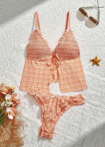 Цвет Оранжевый / Фасон Танкини, Раздельный / Узор Клетка / Тип чашечки Мягкая / Тип низа Бикини