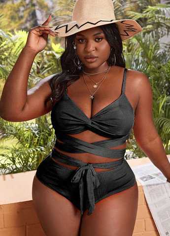 Этот пляжный комплект бикини plus-size выполнен в однотонном черном цвете. Верхняя часть имеет вырез на тонких бретельках и лиф на подкладке. Плавки с высокой талией. Бюстгальтер без косточек и съемные подушечки. Только машинная стирка; химчистка запрещена.
