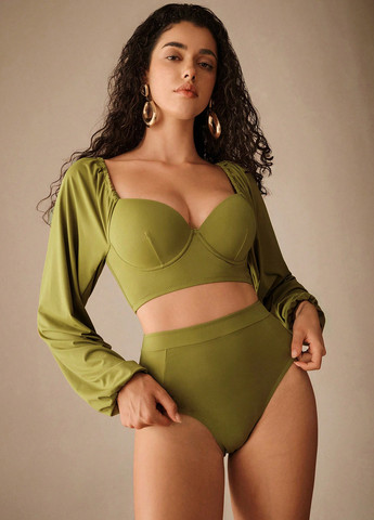 Цвет Оливковый / Фасон Топ, Раздельный / Узор Однотонный / Тип чашечки Формованная / Тип низа Бикини