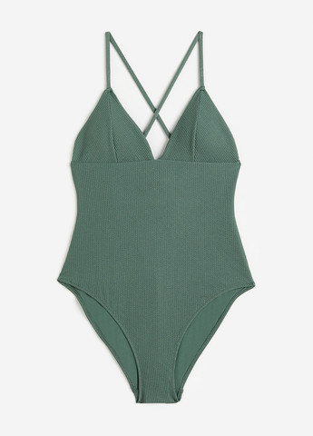 Купальник на полной подкладке с V-образным вырезом и перекрестными бретелями сзади. Чашечки со съемными вставками обеспечивают форму и поддержку. Высокая прорезь для штанин и средняя закрытая спина.