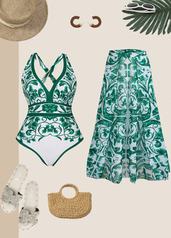 Swim Oasis – Женский купальник. Этот купальник создан для отпуска. Он имеет бюстгальтер с закрытыми чашками и эффектом пуш-ап. Повседневный фасон с перекрещивающимися чашечками на спине. Этот комплект состоит из купальника с высокой талией и юбки. Машинная стирка, не химчистка.