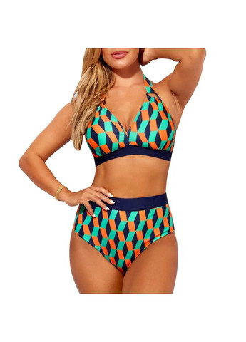 Женский купальник раздельный больших размеров с высокой талией цветной Женский купальник раздельный больших размеров с высокой талией цветной. Бюст с мягкими поролоновыми вставками, которые можно получить при необходимости. Застегивается на спинке на две металлические застежки. Бретели крепятся к бюсту пластмассовыми кольцами, завязываются на шее. Трусы с высокой талией. Передняя часть на подкладке. Материал: 82% полиамид, 18% эластан. Цвет: синий (цветной) Размер: S, M, L, XL, 2ХL, 3XL, 4XL, 5XL Замеры: S: чашка – В-С, обхват под грудью – 80-85, обхват груди – 95-100, охват бедер – 95-100, обхват тали M: чашка – С, охват под грудью – 85-90, охват груди – 100-105, охват бедер – 100-105, охват талии – 95-100; L: чашка – C-D, обхват под грудью – 90-95, обхват груди – 105-110, обхват бедер – 105-110, обхват талии – 100-105; XL: чашка – D, охват под грудью – 95-100, охват груди – 110-115, охват бедер – 110-115, охват талии – 105-110; 2ХL: чашка – D-E, обхват под грудью – 100-105, обхват груди – 115-120, обхват бедер – 115-120, обхват талии – 110-115; 3ХL: чашка – E, обхват под грудью – 105-110, обхват груди – 120-125, обхват бедер – 120-125, обхват талии – 115-120; 4ХL: чашка – E-F, обхват под грудью – 110-115, обхват груди – 125-130, обхват бедер – 125-130, обхват талии – 120-125; 5ХL: чашка – F, обхват под грудью – 115-120, обхват груди – 130-135, обхват бедер – 130-137, обхват талии – 125-130. Возможны расхождения в замерах на 1-3 см.