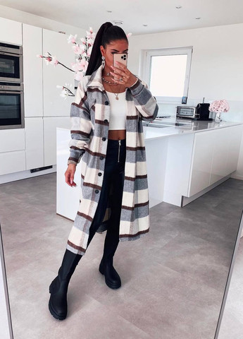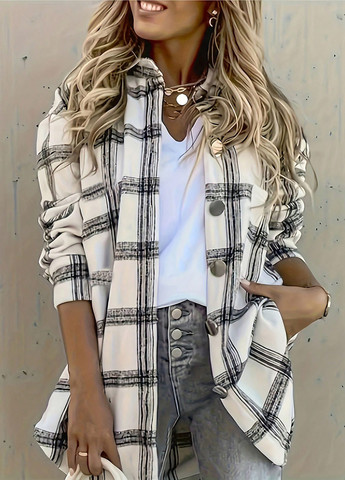 Цвет Светло-бежевый / Узор Клетка / Сезонность Демисезон / Фасон рукава Вшитый / Стиль Повседневный, Кэжуал