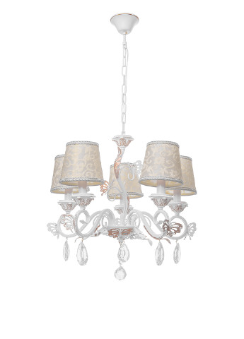 люстра с абажурами BKL-582S/5 E14 обладает особой способностью привлекать к себе внимание. А все из-за плафонов-абажуров, которые приглушают, излучаемый лампами свет, придавая ему мягкости, а помещению романтической атмосферы. Конструкция осветительного прибора представлена металлическим каркасом белого цвета с вкраплениями золотистого, к которому прикреплено пять плафонов. Они изготовлены из бумаги, декорированы изображением бабочки и Эйфелевой башни, которые сделают люстру и интерьер эксклюзивными. Каркас дополнительно украшен подвесками с бусинками. Для работы необходимо использовать пять ламп с цоколем E14 мощностью 40 Вт. Рассчитана люстра для работы от сети 220 В. Тип крепления – монтажная планка. Хорошо будет смотреться в гостиной или спальне. Высота: 310 мм