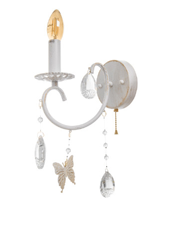 бра в форме канделябра BCL-691W/1 E14 WH+G украсит помещение, выполненное в классическом стиле и в модерне, разделит его на разные световые зоны, осветит мягким, приятным для восприятия светом. Бра изготовлено из металла, окрашено в белый цвет с вкраплениями золотистого. Дополнительно каркас украшен металлическими бабочками и подвесками со стеклянными прозрачными гранеными камушками. Для работы необходимо использовать одну лампу с цоколем Е14 (накаливания, энергосберегающая, светодиодная). Рекомендуем лампу свечевидной формы. Включать и выключать светильник нужно с помощью настенного клавишного выключателя. Ширина: 120 мм, длина: 360 мм, высота: 220 мм