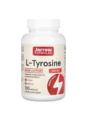 Свойства продукта: Помогает поддерживать хорошее настроение Поддерживает нормальную работу щитовидной железы Показания к применению Принимайте по 1 капсуле 1-2 раза в день натощак, сразу после пробуждения утром, желательно с соком в качестве источника углеводов или по указанию квалифицированного врача. Что это? L-Тирозин – это аминокислота, которую еще называют гормоном настроения. Она необходима для нормального функционирования щитовидной железы и надпочечников. С помощью тирозина можно нормализовать аппетит, пониженное давление и уменьшить отложение лишних жиров. Его нехватка в организме приводит к плохому настроению и даже депрессиям. L-Тирозин компании Jarrow Formulas® содержит чистый кристаллический L-Тирозин. Как это работает? Прием тирозина рекомендуется при тревожных состояниях, хронической усталости, плохом самочувствии, головных болях и низком давлении. При хроническом стрессовом состоянии у человека плохо вырабатывается тирозин, что влияет на физическое состояние, например, все время плохое настроение. Поэтому следует дополнительно принимать эту аминокислоту в виде капсул. Он может помочь, если возникло привыканию к лекарственным препаратам. После приема L-Тирозина улучшается качество сна, память, физическое состояние и ускоряется мышечное восстановление после тренировок. Влияет на пигмент меланина, что сказывается на цвете коже и волос, защите от вредного ультрафиолета, и на работу щитовидной железы. Является также антиоксидантов, борясь со свободными радикалами, которые ускоряют старения организма и приводят к развитию разнообразных болезней. Элемент Вес Единица Процент Порция 1 Капсула L-Тирозин 500 мг