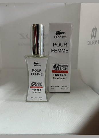 В который раз представители парфюмерного искусства ищут ключи от непредсказуемой и неоднозначной женской натуры. Она всегда была и остаётся загадкой. Работники парфюмерного цеха известного бренда Lacoste снова и снова находят способы для того, чтобы выразить внутренний мир прекрасных дам с помощью сложных композиций. Аромат Lacoste Pour Femme – это невероятно удачная попытка проникнуть в глубины женской души, отыскать там драгоценные россыпи и поднять их на поверхность, чтобы явить окружающему миру. Конечно же, речь идёт не о жемчуге и рубинах, а о чертах характера, притягательных сторонах души. Чтобы намекнуть на светлую природу обладательницы парфюма, в качестве выразительных средств в композиции выступают разнообразные цветочные нотки и древесные оттенки, которые каждый по-своему передает то, что глазами не увидишь. Букет ароматических оттенков Lacoste Lacoste Pour Femme собирается в единый соблазнительный образ. Премьера аромата: 2003. Классификация: элитная. Начальная нота: Бергамот, Зеленое яблоко, Масло мускатного ореха, Перец, Фрезия. Нота сердца: Гелиотроп, Гибискус, Жасмин, Роза, Фиалка. Конечная нота: Кедр, Кожа, Лабданум, Ладан, Мускус, Сандаловое дерево.