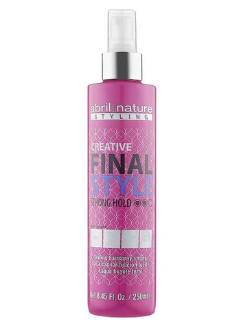 Не верите в эффективность натурального стайлинга? Доказать ее торопится спрей испанского бренда Abril et Nature. Он отличается профессиональной формулой со стволовыми клетками растений и арганиевым маслом, которое эффективно ухаживает за локонами и обеспечивает экстрасильную фиксацию укладки. Спрей станет идеальным выбором для мастера-стилиста, а также отлично дополнит домашний арсенал стайлинговых продуктов и станет вашим фаворитом. Особенности Abril et Nature Advanced Stiyling Creative Final Styl Extra Strong Hold: На основе натуральных компонентов; Легкая водостойкая формула очень сильной степени фиксации; Удобно и равномерно наносится; Не отягощает и не склеивает пряди, обеспечивает их надежную фиксацию в нужном положении, сохраняя естественную эластичность; Отличается увлажняющими, питательными, укрепляющими и восстановительными свойствами; Создает невидимый защитный барьер, блокирующий негативное влияние ультрафиолетовых лучей и других вредных внешних агентов; Средство не проходило проверку на животных. Состав: Alcohol Denat., Octylacrylamide/Acrylates/Butylaminoethyl Methacrylate Copolymer, Parfum/Fragance, Aminomethyl Propanol, Peg-12 Dimethicone, Limonene, Argania Spinosa Kernel Oil, Butylphenyl Methprop Vegetable Protein Pg-Propyl Silanetrol, Phenoxyethanol, Potassium Sorbate, Disodium Edta, Malus Domestica (Apple) Fruit Cell Culture Extract, C.I. 60730/Ext. D&C Violet 2, Xanthan Gum, Glycerin, Lecithin