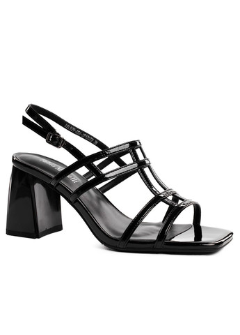 Босоножки пошиты в комбинации текстиля и искусственной лаковой кожи.