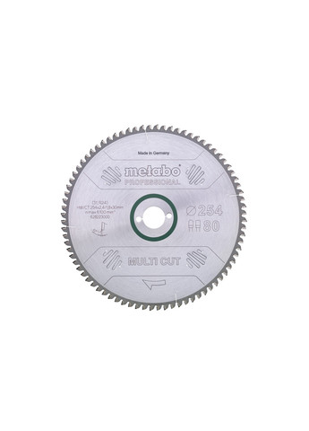 Пильный диск Metabo Multi Cut Professional 254х2,4х30 мм Z80 FZ/TZ 5° neg - имеет универсальное применение и подходит для работы со сложными материалами, такими как ламинат, тонкостенные полимерные, алюминиевые, медные и латунные профили. Диски данной серии также подходят для многих задач внутренней отделки. Диски показывают превосходные результаты при поперечной резке цельной древесины, необработанных древесностружечных панелей, с покрытием или фанеркой, МДФ. Преимущества для пользователя: Универсальное применение со сложными материалами При высочайших требованиях к качеству реза, например, ламинат, тонкостенные полимерные, алюминиевые, медные, латунные профили Идеально подходит для многих задач внутренней отделки Превосходные результаты также при поперечной резке цельной древесины, необработанных древесностружечных панелей, с покрытием или фанеровкой, МДФ Требуется очень большая мощность циркулярной пилы Особенно большой срок службы благодаря наивысшему качеству твердого сплава и тонкошлифованным зубьям Точное резание с низким уровнем шума и сведенной к минимуму вибрацией благодаря вырезанным лазером расширительным канавкам (и частично лазерному рисунку), а также вырезанному лазером несущему полотну пилы из высококачественной стали Крепление с дополнительными отверстиями в пильных дисках с Ø 216, 250, 254 и более 300 мм В комплект поставки входит Пильный диск Metabo Multi Cut Professional 254х2,4х30 мм Z80 FZ/TZ 5° neg, картонная коробка Производитель имеет право изменять комплектацию и конструкцию не внося изменений в инструкцию и без уведомления.