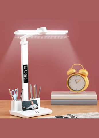 Настольная LED лампа VHG JN-108 с часами, календарем, термометром и встроенным аккумулятором (White) Это современная многофункциональная лампа 3-в-1, которая станет идеальным решением для рабочего или учебного стола. Ее элегантный универсальный дизайн позволяет использовать устройство в качестве стильного декора, подстаканника и мощной лампы для чтения. Лампа может поворачиваться в трех плоскостях, обеспечивая идеальный угол освещения для комфортной работы или чтения. • Встроенный дисплей отображает время, дату и температуру. Чтобы снова включить часы, нужно нажать кнопку «ON» на задней части корпуса. (SMD 4014), 5W• Световой поток: 800 lm• Мощность: 0,5–7 W• Цветовая температура: 6000К / 4000К / 3500К• Материал: Глянцевый ABS пластик• Размеры в сложенном виде: 360 х5 360 х 285 х 190 мм• Цвет: Белый✅ Особенности:• Три уровня цветной температуры• Пять уровней яркости• Отсутствие мерцания для защиты глаз• Энергосберегающая технология• Легкая, прочная и портативная конструкция• Сенсорное управление✅ Комплектация:1. LED лампа2. Документация3. USB-кабель Type-C4. Заводская упаковка Эта лампа не только обеспечит качественное освещение, но и станет стильным акцентом в вашем интерьере, заботясь о комфорте и энергосбережении.