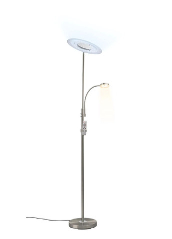 Приятный свет без бликов идеален для чтения, рукоделия, работы. Гибкая шея для точного позиционирования. Энергосберегающий и долговечный светодиодный модуль, излучающий теплый белый свет. 4-ступенчатый сенсорный диммер на головке лампы. Благодаря своей форме светильник будет идеальным дополнением к любому интерьеру. Максимальная мощность: прибл. 220-240 В; Цветовая температура: 3000К; Световой поток: 600 лм; Срок службы светодиода: 25 000 часов; Материал: Сталь, пластик. Размеры: Высота: приблизительно. 166 см (общая высота в разложенном виде), длина головки лампы: примерно 28 см, диаметр основания: примерно. 21 см Длина кабеля: прибл. 1,8 м. Производитель Германия.