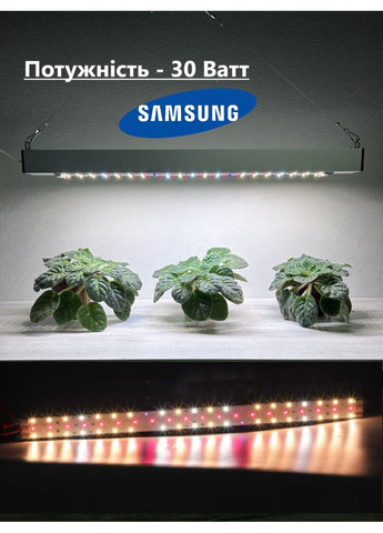 Линейный led-светильник на оригинальных светодиодах Samsung lm281b – идеальный помощник в осенне-зимний период, прекрасно себя зарекомендовавший в растительности. Идеально подходит как для освещения растений (рассады, цветов, цитрусовых, зелени и т.д.), так и для использования как основного освещения в теплицах, зимних садах, для гидропоники и стеллажей. В лампе скомбинированы светодиоды Samsung с температурой свечения 3000К+5000К, а также красные светодиоды 660nm (Deep Red)+ инфракрасные – 730nm + ультрафиолетовые 395nm. Технические характеристики: Размер лампы 600*40*40 мм. Площадь покрытия лампой 800*400 мм. Реальная мощность 30 Вт. Световая эффективность 200 Лм/Вт. Световой поток до 6000 Лм. Есть также модель мощностью 60 ватт. Длина 1200 мм. При необходимости может быть дополнительно укомплектована подвесами (в комплекте не уходят).