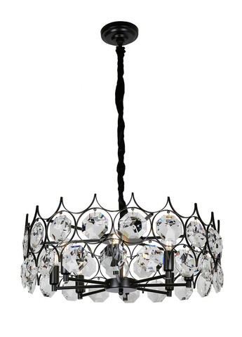 Люстра 7617001-8 (600) Материал - металл+стекло Цвет - черный+прозрачный Размер - 600*230 мм Тип крепления - потолочный круг Цвет крепления к потолку - черный Материал крепления - металл Тип люстры - подвесная Источник света - 8 ламп Е14 Максимальная лампочки 40 Ватт Возможность использования лампы: LED, накаливание, энергосберегающая Комплектация лампочками: Нет