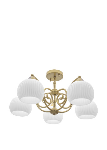 для ценителей красоты в простоте, мы предлагаем приобрести потолочную люстру BKL-58S/5 E14. К потолку она монтируется с помощью, закрепленной на основании, планки. Материалами для изготовления люстры послужили металл и стекло, она проста в эксплуатации, не требует к себе особого ухода. Конструкция люстры состоит из металлического фигурного каркаса золотистого цвета и пяти плафонов. Плафоны стеклянные, прозрачные, декорированы нежным узором белого цвета. Дополнительно каркас украшен подвесками в виде цветов. Источником света служат пять ламп с цоколем Е14 мощностью 4 Вт. Это могут быть как традиционные лампочки накаливания, так и энергосберегающие или светодиодные. Повесить такую люстры вы сможете в гостиной, поскольку свет она излучает мягкий, не бойтесь ее вешать и в спальне. Хорошо она будет смотреться в паре с настольной лампой или бра, выполненными в таком же стиле, не обойтись и без торшера. Сложив все пазлы в единое целое, вы сможете достичь максимально комфортной и уютной атмосферы в вашем доме. Высота х диаметр (мм): 270х500
